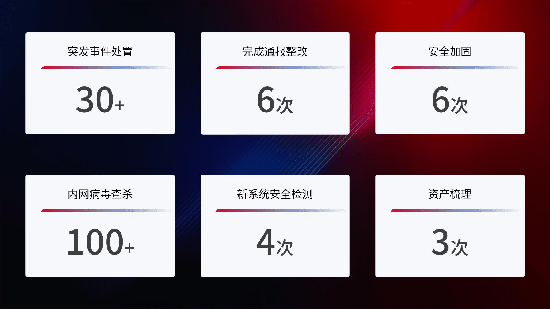 根据客户需求定制整改方案,,,,强化应急演练,,,提升网络安全事件应对能力。。
